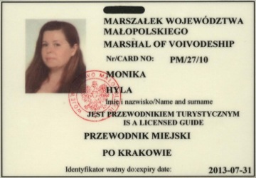 Monika Hyla – she graduated from the Department of Polish at the Jagiellonian University, she is also the first guide in Poland to have done postgraduate Cracow Studies at the Faculty of History of the Jagiellonian University. Monika has been a licensed Cracow, and Ojców tour guide since 2010. The certificates she gained, entitle her to be a guide for organized groups, pilgrims, and individual tourists in Polish, Russian, and English.